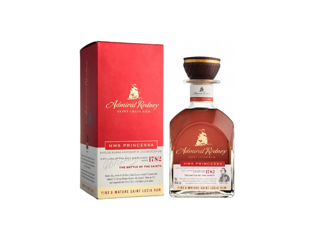 Stařený rum melasový, stáří 5-9 let. Rum Admiral Rodne z palírny St. Lucia Distillers je pojmenován po britském admirálovi siru Georgi Rodneym na památku vítězné bitvy proti francouzskému loďstvu u soustroví des Saints u Guadaloupu, tzv. „Battle of the Saints“. HMS Princessa byla jednou z 22 lodí velké britské flotily admirála Rodneyho.